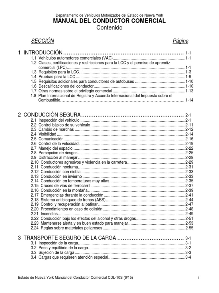 Manual Del Conductor Cdl New York 2017 Pdf Licencia De Conducir Transporte