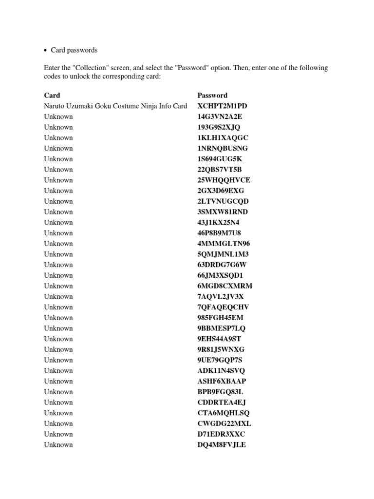 naruto ultimate ninja storm generations passwords